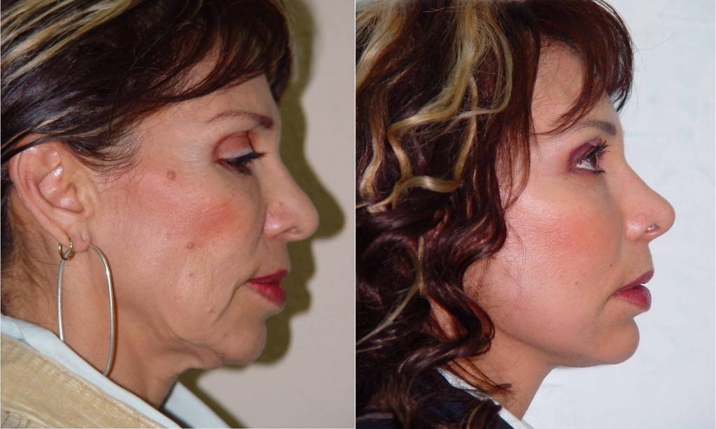 Por la influencia de la gravedad, el sol, fumar, el estrés y la edad, nuestra cara puede perder su forma joven y resplandeciente. La piel se vuelve flácida, el contorno del hueso maxilar pierde su firmeza y la arruga naso-labial se hace más profunda. La cirugía plástica no puede detener el proceso de envejecimiento, pero puede dar un aspecto más jovial en la paciente.